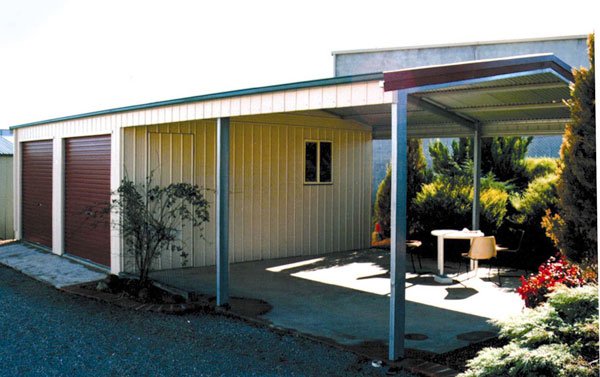 Garages can be open or closed bays, internally and additional car-port awnings can be supplied to provide either a covered parking area or shaded seating areas.